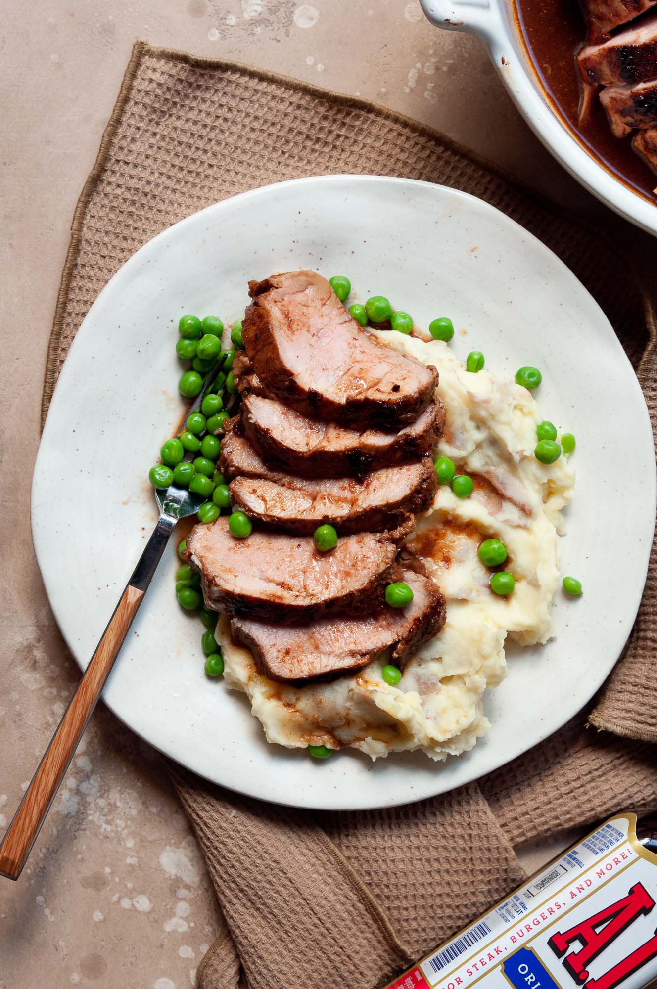 Oven Roasted A1 Pork Tenderloin. There is actually nothing worse to me than having to make dinners that I actually want to eat after an entire day of work. Not to mention when I am exhausted and have to spend time messing up the kitchen AND cleaning it again. This dinner is almost entirely hands off. You spend Place pork in a bowl with marinade. Your only hands on time is making the quick marinade and the 5 minutes that we brown the pork. And then it spends the next 30 minutes in the oven.
