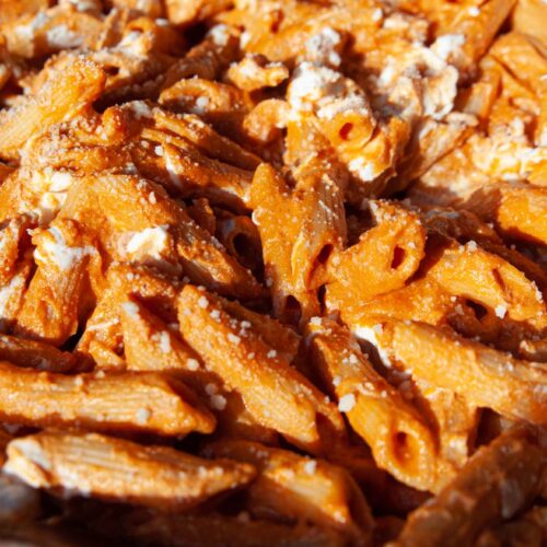 Vodka Sauce with Whipped Ricotta is your favorite classic vodka sauce with a simple twist. It’s still the creamy, bright, gorgeous orange sauce you love, but without the heavy cream. The flavor leans richer and more tomato-forward, built from a deeply cooked tomato paste that gives the sauce its depth.
